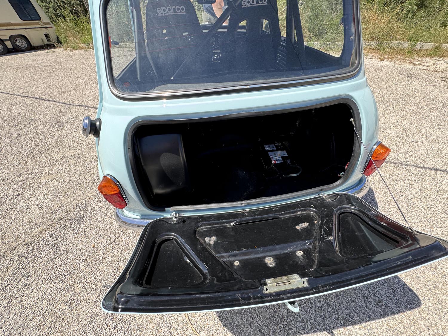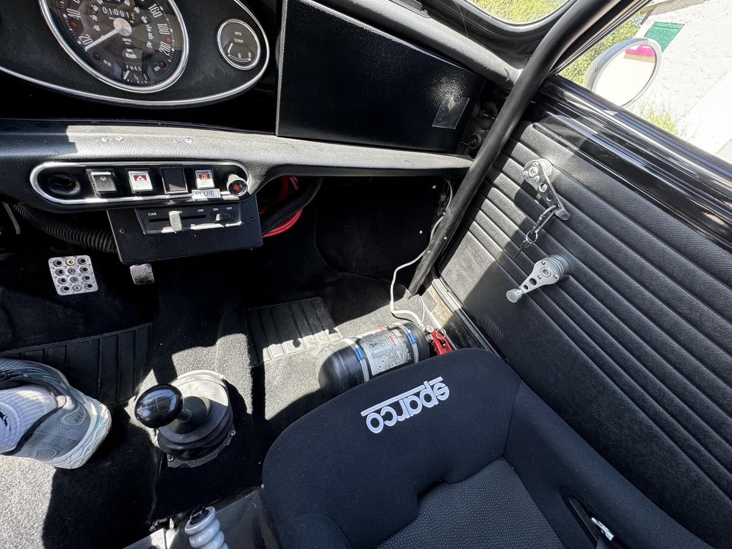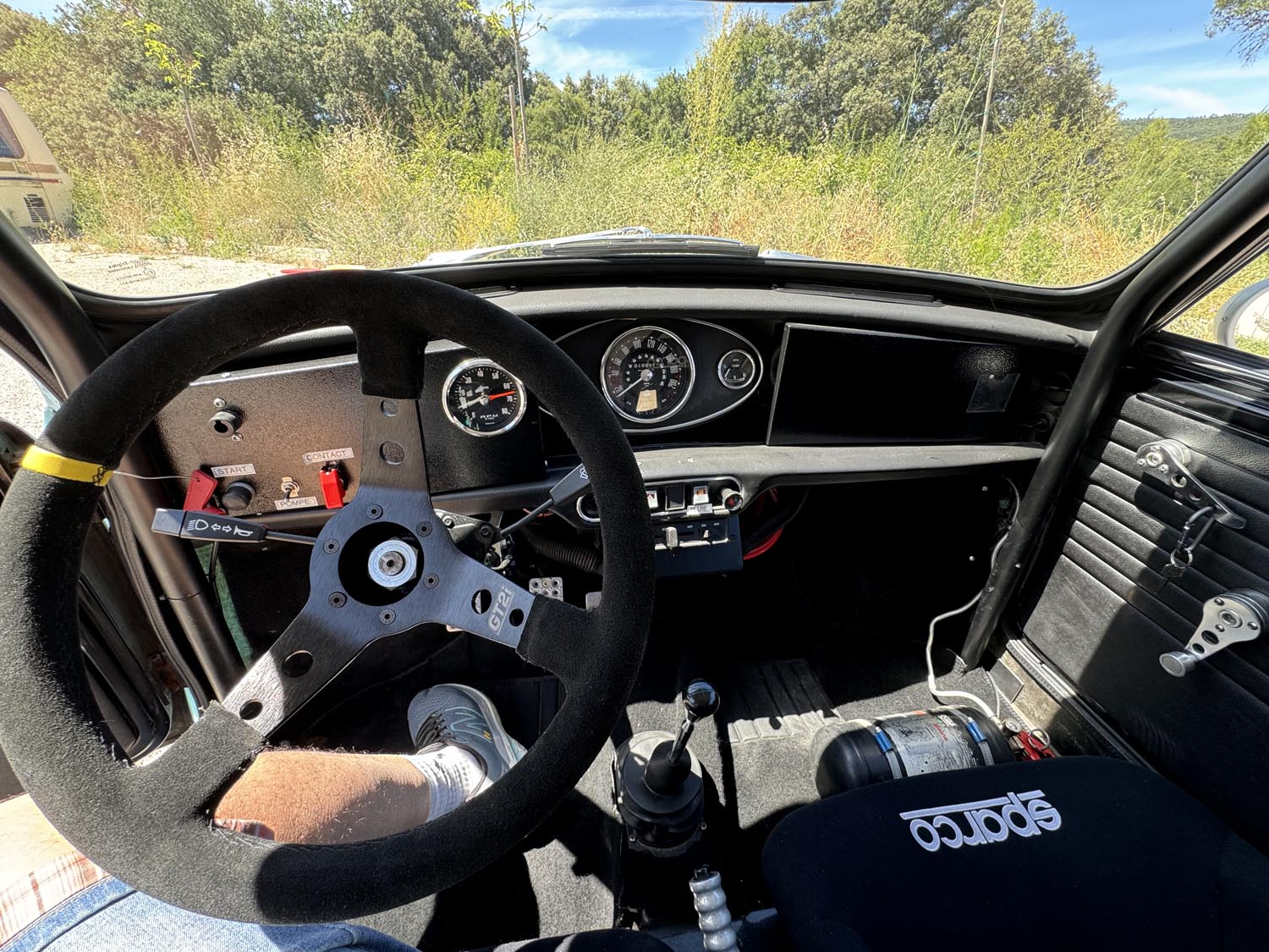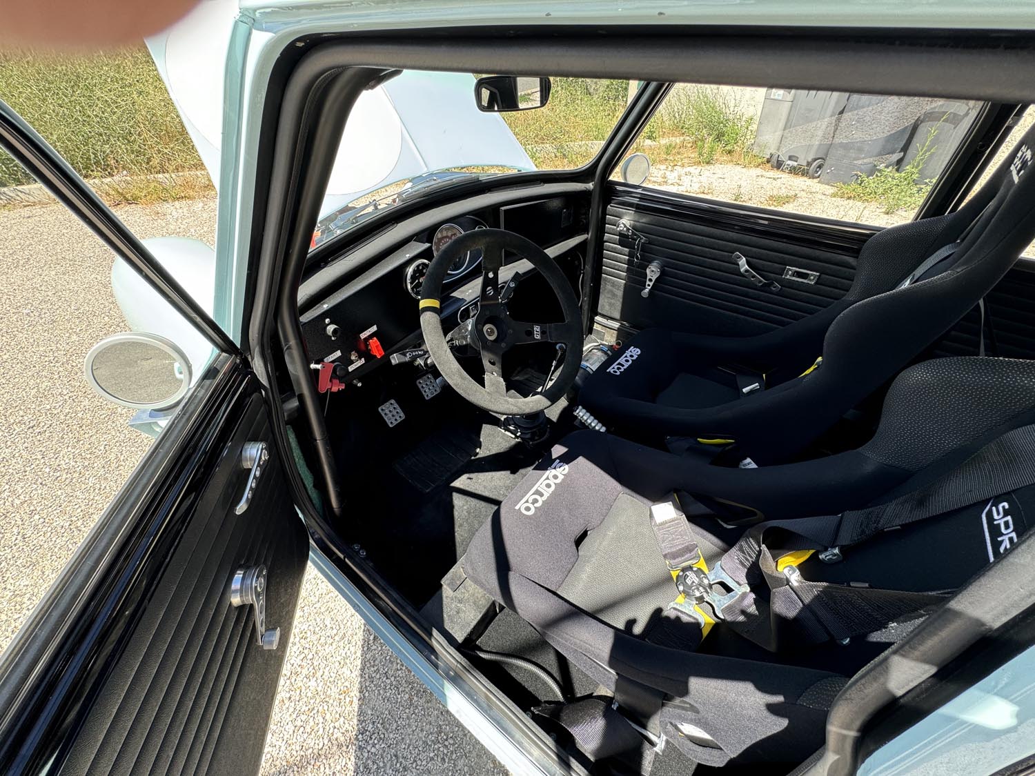 Sécurité FIA OK : Extincteur, baquets et harnais.